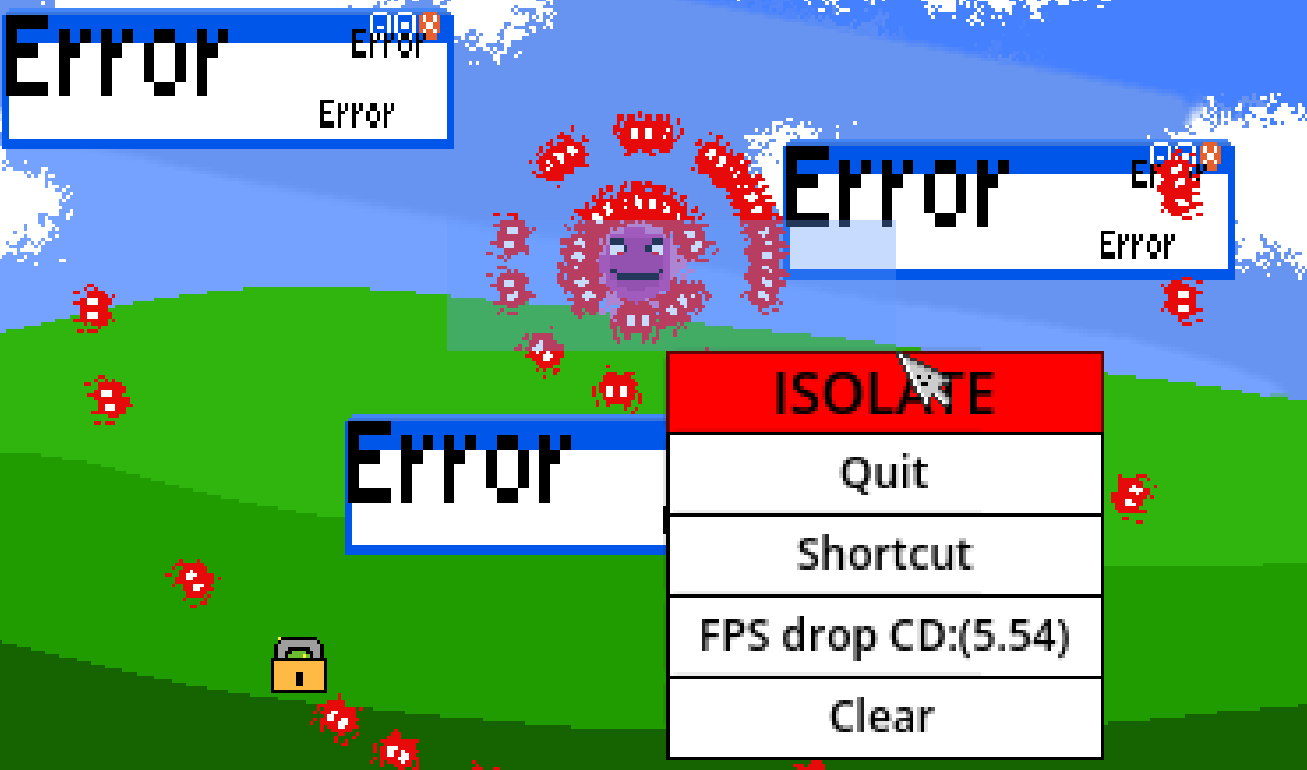 In this Bullethell you are tasked with isolating all the Viruses infesting your computer, so they can't continue to roam and spread!
